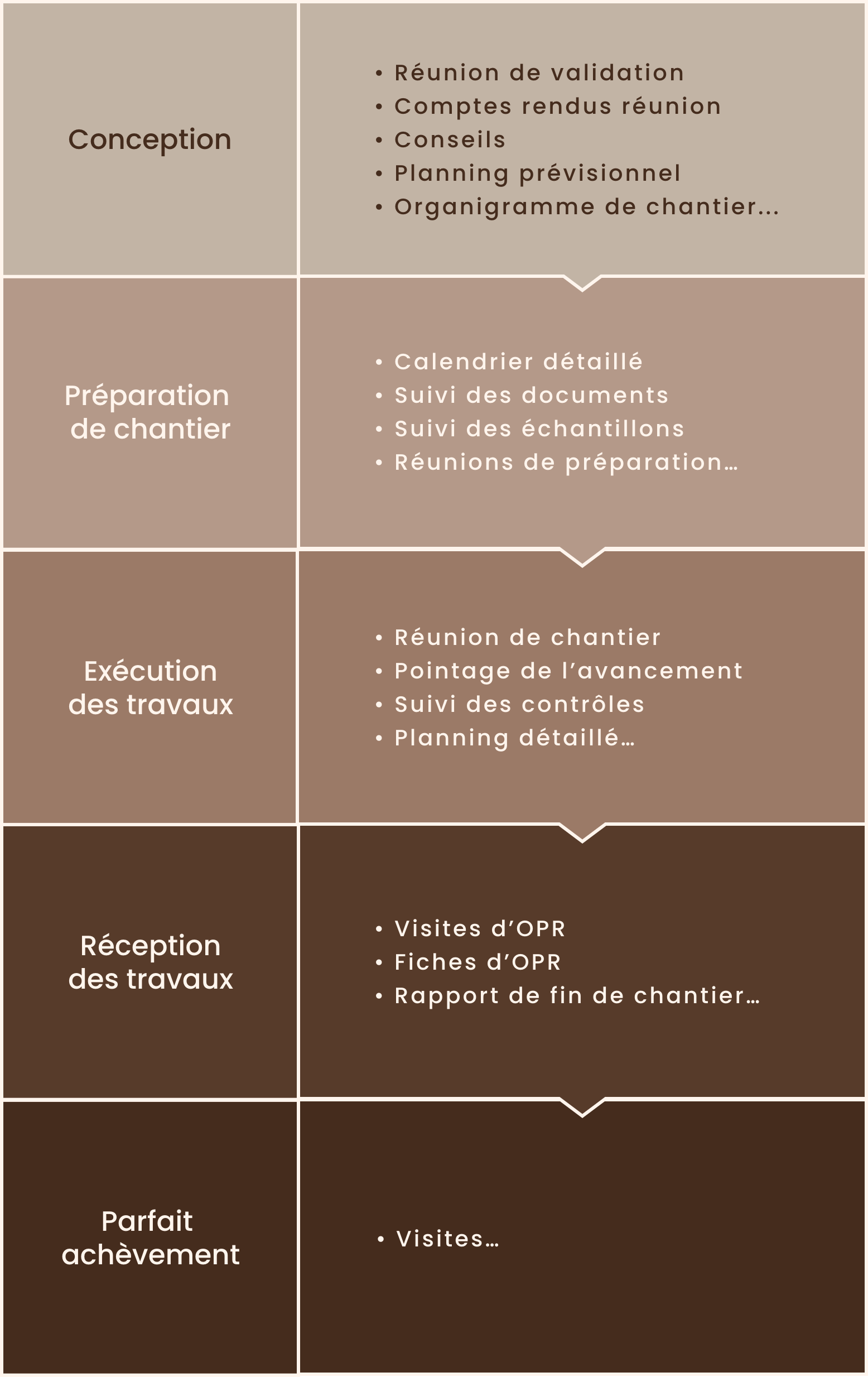 Notre rôle étant d’assurer toutes les étapes de votre projet, nous vous accompagnons tout au long de celui-ci, de sa conception jusqu’à sa livraison.